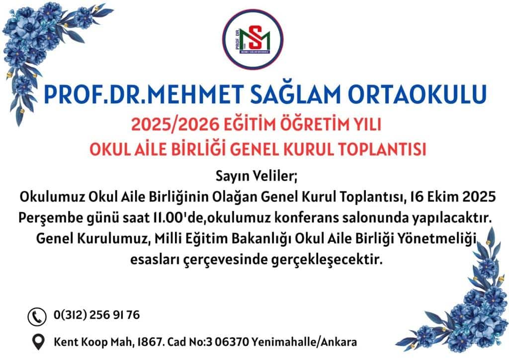 2025-2026 Eğitim Öğretim Yılı Okul Aile Birliği Toplantı Duyurusu