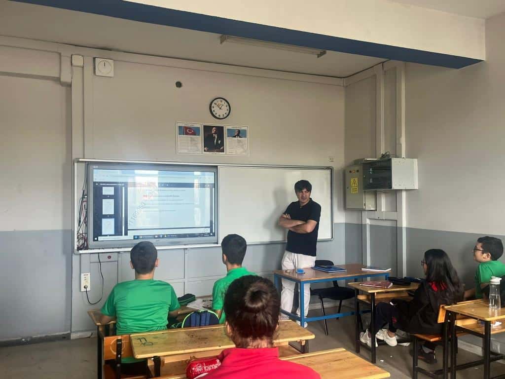 Okulumuzda öğretmenlerimiz tarafından öğrencilerimize derslerde eş zamanlı olarak içerikler anlatılmıştır.